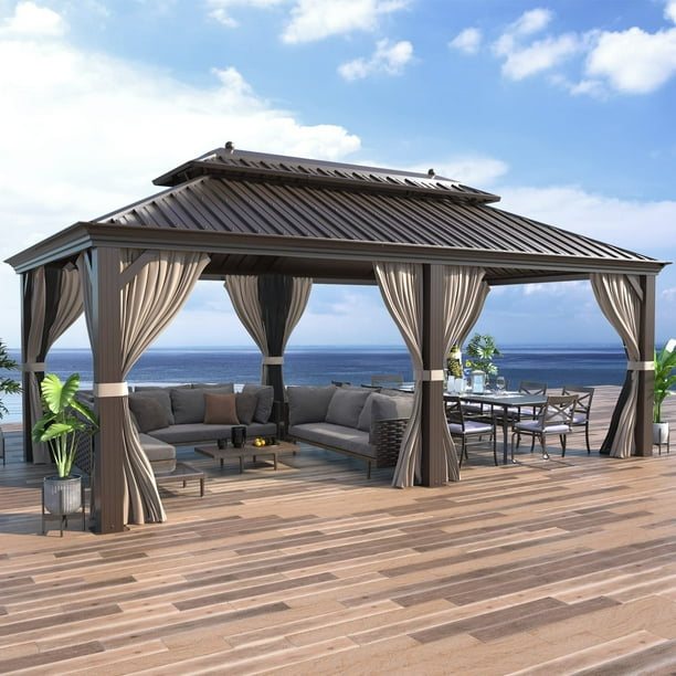 Mellcom 12 X 20 Hardtop Gazebo Galvanized Steel Outdoor Canopy Aluminum Frame Walmart Com